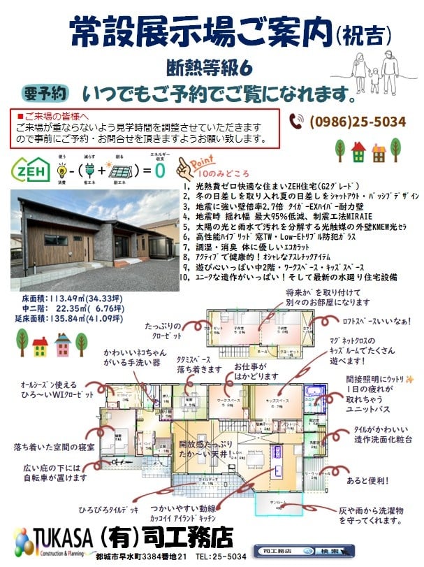一覧へ戻るZEH祝吉展示場OPENしました!2025-08-22祝吉にZEH展示場がOPENしました!ご予約いただければいつでもご案内出来ますので下記までお気軽にお問合せ下さい。 有限会社 司工務店 お問合せは電話25-5034まで 詳しくはこちら